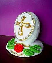 Пасхальный сувенир, яйцо на подставке.Материалы гипс,краски акриловые, лак. Размеры изделия: высота 6.5 см яйцо сделано в натуральную величину. При заказе мелким оптом сделаю скидку. Отправляю наложным платежом. |