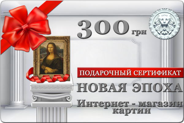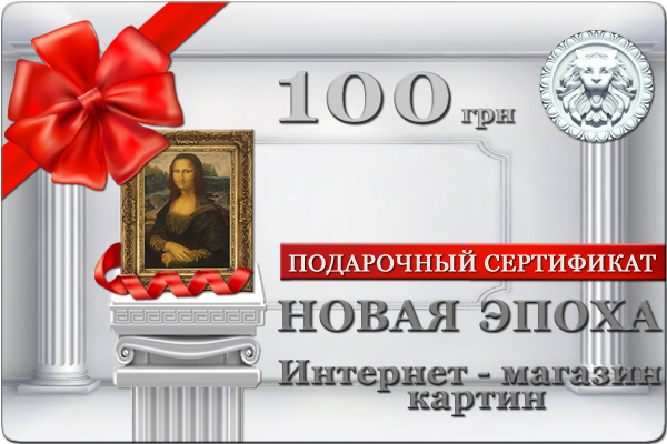 Интернет – магазин картин «НОВАЯ ЭПОХА» предлагает подарочные сертификаты на покупку картин маслом номиналом 100 и 300 гривен.