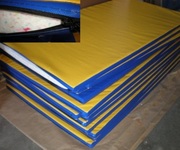 Мат татами размер : 1,0х2,0х0,04 плотность140/160/180/200. Верхняя часть листа ПВХ «рисовая соломка», набивка поролон вторичного вспенивания. Цвета ПВХ- синий, желтый, красный, зеленый (оливковый).