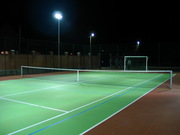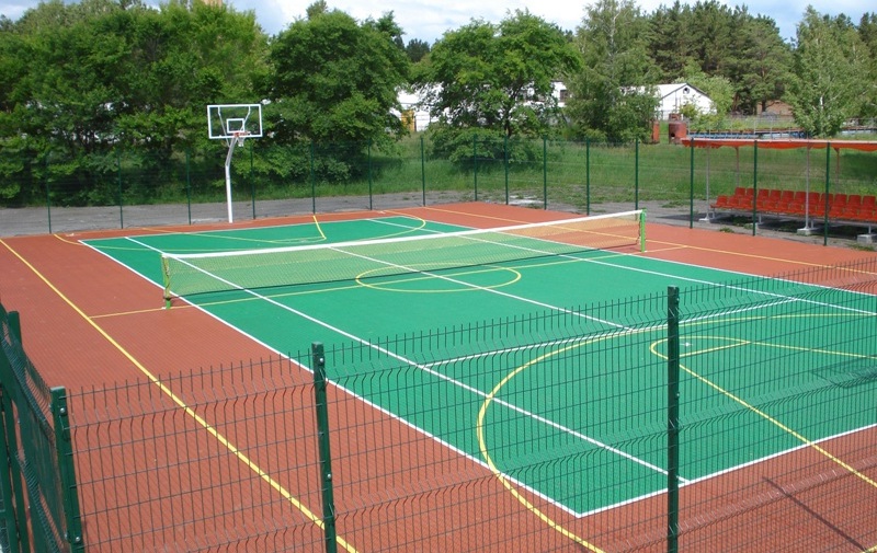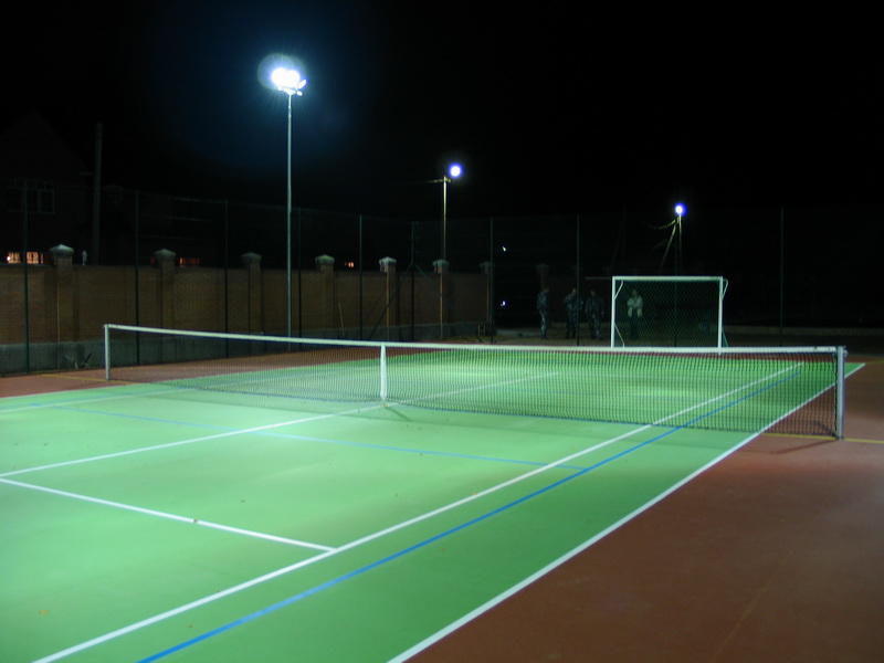 - стойки для большого тенниса, сетки, фоны (ветроломы), центральная линейка, маркировочные линии;