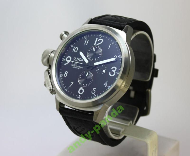 Реплика Марка часов: U-Boat Механизм: механика с автоподзаводом Минеральное стекло Застежка: классическая, нержавеющая сталь Диаметр корпуса: 50 мм Высота: 15 мм Ширина ремешка: 23 мм Длинна ремешка 250 мм (вместе с корпусом) Часы U-Boat Зародившись в 1942 году, компания U-boat запустила массовое производство в 1999. Это время не прошло впустую, идеи накапливались и воплотились в серии потрясающих часов, созданных на основе эмоций и восхищения владельца Итало Фонтано, от кабины самолета, на котором он побывал. Часы U-boat, представляют собой мощный циферблат, с отчетливыми цифрами и выделяющимся дизайном! Они многофункциональны и продуманы до мелочей. Этот бренд становится все более популярным, и концептуально гениальным! Эти часы выбирают сильные мужчины, успешные и известные. Сотни всемирно известных имен, купивших данные изделия, доказывают, что настоящие мужчины, предпочитают мощные, классические и настоящие огромные часы. Стоимость моделей этой фирмы конечно высока, материалы, имя и время, позволяют им беспрекословно стоить дорого. Но для тех, кто всегда мечтал о таких стильных и настоящих часах, созданы более недорогие копии часов U-boat мужские и женские. Это настоящий подарок для ценителей роскошного дизайна бренда. Использование современных, мощных и надежных материалов, заменяющих дорогостоящие драгоценные металлы, позволяет получить копии швейцарских часов U-boat, по привлекательной цене. Это 100% аналог, который отвечая всем параметрам качества, имеет долговечный и точный часовой механизм.