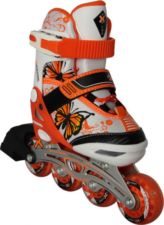 Шнуровка, бакля AUTОLOCK и пяточный ремень Мягкий ботинок из кожзама в комбинации с нубуком Улучшенная боковая поддержка ноги Нейлоновая оболочка, ТРЕ манжета Алюминиевая рама Хромированный подшипник "EXPLORE" высокого класса точности, состоящий из 7 шариков, заложена пластичная смазка, не меняющая свойств от перепада температуры Кнопочная система регулировки на 4 полных размера Колеса 64*24мм,70*24мм,72*24 мм, жесткостью 82А тел. 0982647070, 0953538136 Люба |