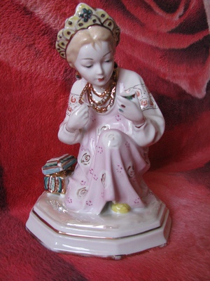 Фарфоровая статуэтка девушки смотрящяяя в зеркало Ленинградский завод фарфоровых изделий (ЛЗФИ) 1954 г маленький дефект в зеркальце высота 21 см. 1200гр. торг 0977977800. |