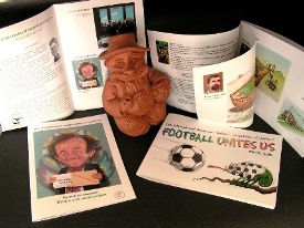 Подарок футболисту, футбольному фану, футбольному классу. Каталоги карикатуры на футбольную тему"Футбол объединяет нас" 2010 и 2012., по результатам крупнейшего международного конкурса карикатуры. в каталоге-178 карикатур профессиональных художников из 40 стран мира. Можно использовать как книгу для автографов лучших футболистов мира. Каталоги: по 20 стр. мелованная бумага, офсетная печать, Можно заказать по предоплате на сайте конкурса. Сразу высылаем скан квитанции о пересылке. При заказе более 10 каталогов-скидка 10% (на класс или футбольную команду.) Цена указана за 1 экз. с пересылкой. |