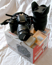 фотоаппарат Canon 450D, обьектив Canon EF-S 18-55mm 3.5-5.6 IS Kit плюс фильтр UV Marumi, обьектив Sigma 18-200mm 3.5-6.3 DC OS с блендой плюс фильтр UV Marumi.Запасной акумулятор. |