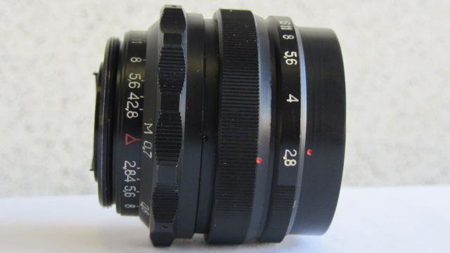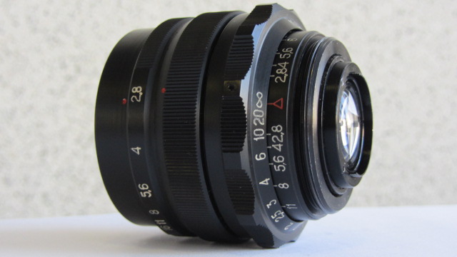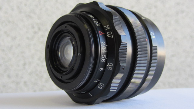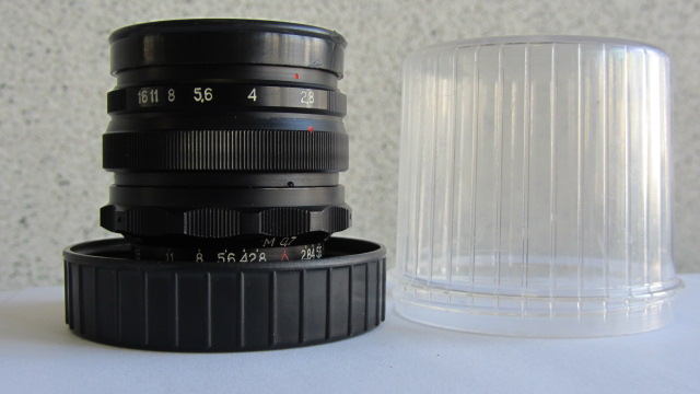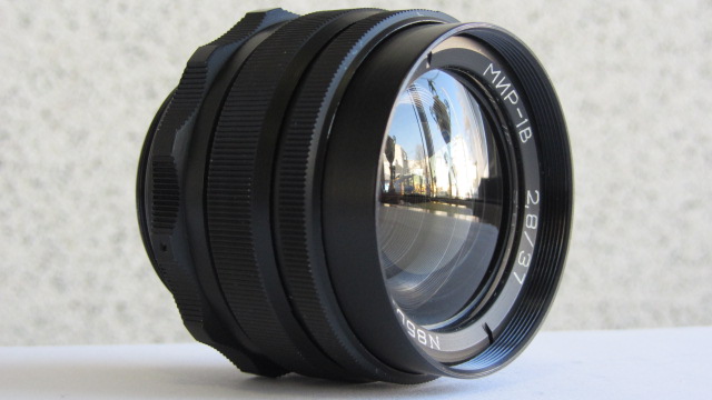 Мир-1В 2,8/37 — сменный широкоугольный шестилинзовый объектив. Оптика просветлена.