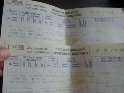 Продам 2 билета Киев-Симферополь купе на 26. 04. 13, поезд 40 - Другие билеты