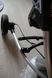 Шасси выполнено из 100% алюминия. Большая сетка для продуктов. Подножка не регулируемая, 5точечные ремни безопасности с мягкими плечевыми накладками. Спинка плавно регулируется ремнем не до горизонтального положения. Задняя часть капюшона отстегивается. Колеса пластиковые, переднее колесо сдвоенное, поворотное на 360гр. с возможностью фиксации. Ручки две не регулируемые.з-х колесное шасси, переднее колесо сдволенное, поворотное с фиксацией. Сетка для продуктов, подножка не регулируется, спинка регулируемая, но не до положения лежа. С 5-точечными ремнями безопасности с мягкими плечевыми накладками.