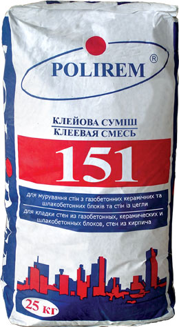 Polirem СКк-151: сухая тонкослойная клеевая смесь на основе цемента, предназначенная кладки стен из газоблоков, пеноблоков и шлакоблоков. Характеризуется повышенной водоудерживающей способностью и морозостойкостью. Используется также при кладке стен из кирпича и керамических блоков. Рекомендуется при строительстве фасадных стен. Polirem СКк-157: Универсальный строительно-монтажный клеевой раствор предназначенный для кладки стен из: пеноблоков, шлакоблоков, газоблоков и кирпича, а так же для выполнения штукатурных работ по вышеуказанным поверхностям. Применяется для выполнения наружных и внутренних ремонтно-строительных работ. |