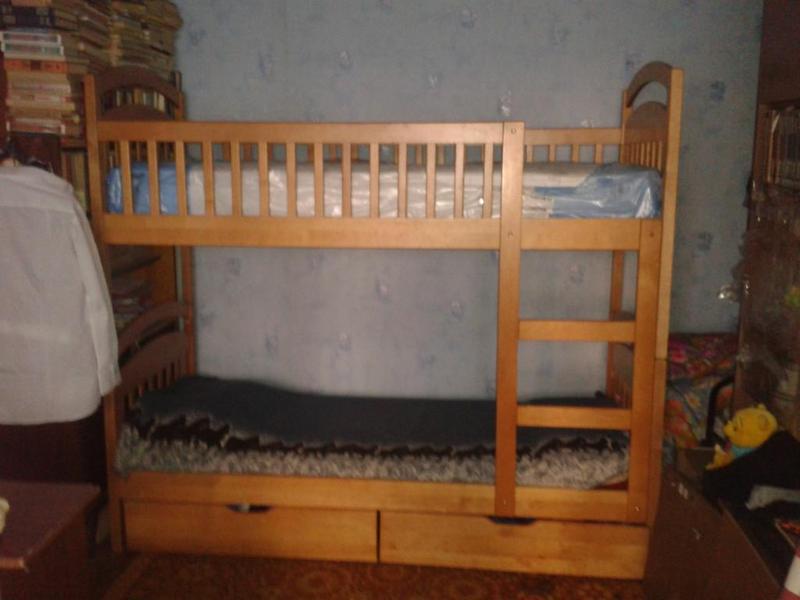 Кровати 3 месяца. Имеються незначительные покусывания на втором ярусе кровати(у ребёнка резались зубки^_^) Кровать *лёгким* движением руки превращается в две односпальные кровати.Инструкция прилагается.Возможен торг. спросить Ксению. Звонить в любое время. Длина-190/198 см.,Ширина-80/88 см.,Высота-160 см. Лестничка справа.В комплект входит один матрас |