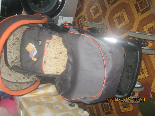 серо-оранжевого цвета с вращающимися передними колёсами,чехол для ног,дождевик,большая корзина,в хорошем состоянии |