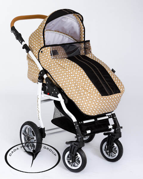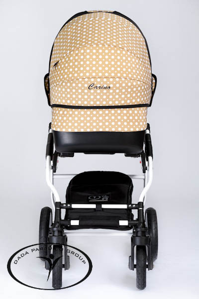 - коляска Dada Paradiso Group (DPG) Carino имеет задние колеса большего диаметра чем передние колеса для лучшей проходимости коляски в сложных дорожных условиях;