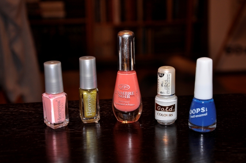 синий, оранжевый, розовый, золотой, белый лаки - Лак, накладные ногти