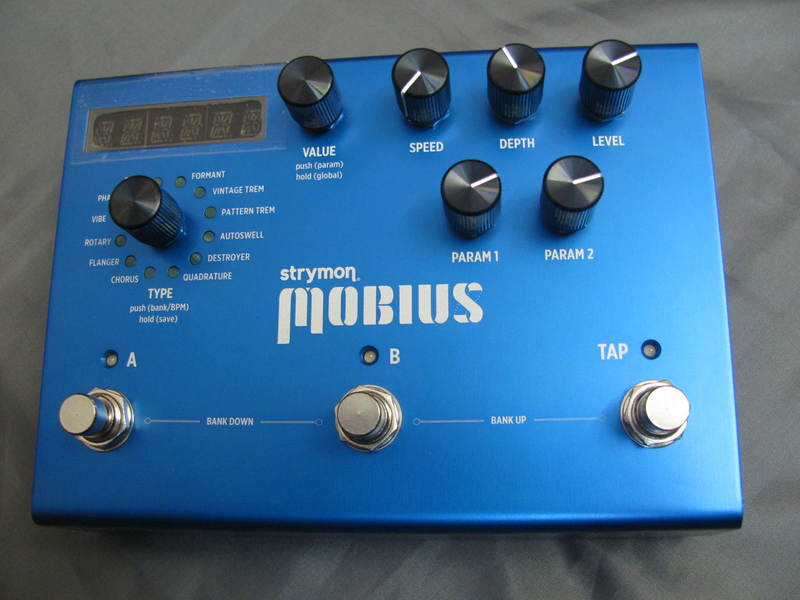 Самая жаркая и ожидаемая новинка от Strymon! Strymon Mobius вобрал в себя двенадцать наиболее востребованных модуляционных эффектов,а именно: - Chorus (Хорус) - Flanger (Флэнжер) - Rotary (Вращающийся динамик) - Vibe (Вибрато) - Phaser (Фейзер) - Filter (Авто-вау, фильтры) - Formant (Имитация голоса) - Vintage Trem (Тремоло) - Pattern Trem (Ритмическое тремоло) - Autoswell (Нарастание громкости) - Destroyer (Эффекты с глубиной семплирования)