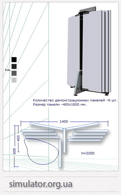 Стенд для плитки имеет 8 панелей формата 400х1800 мм. Панель - лист ламинированный толщиной 18 мм,цвет под заказ, с противоударными резиновыми демпферами. Раскрытие панелей до 120 градусов, что обеспечивает качественный просмотр экспозиции. Предусмотрена их удобная замена. Конструкция стенда устойчивая, рассчитана от опрокидывания, каркас сварной - материал труба профильная. Основание оснащено 3-мя ножками регулируемыми по высоте. Задняя декоративная стенка - лист перфорированный. Покрытие - порошковая краска, цвет RAL 7016. Передняя стойка изготавливается - металл, дерево. |