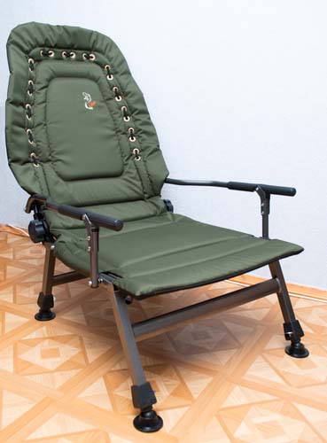 Размеры кресла: *глубина сидения – 550мм *ширина – 550мм *высота сидения – 300-450мм *высота спинки - 650мм *вес – 8кг Регулировка высоты сидения за счёт поднятия ножек. Каждая ножка регулируется отдельно, предоставляя возможным подстроить сидение горизонтально поверхности, учитывая особенности рельефа местности. Спинка имеет угол наклона, регулируемый боковыми винтовыми устройствами. Спинка при необходимости ложиться на 180". Кресло складывается по принципу всем известной нами "раскладушки". Материал каркаса - профилированная сталь. Предельно-допустимая нагрузка - 120кг. Кресло является одной из самых популярных и самых известных среди рыболовов моделей. Производитель Польша. |