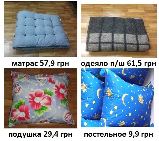 Кровати армейские, матрасы ватные, одеяла, подушки. Опт. Производство. Кровать металлическая: - одноярусная - 501 грн. - двухярусная - 993 грн. Матрасы ватные: - 190*70 - 90 грн. - 190*80 - 99 грн. - 190*90 - 111 грн. Одеяло полушерстяное: - 50% шерсти - 75 грн. - 70% шерсти - 99 грн. - синее (армейское) - 132 грн. Подушка: - ватная - 30 грн. - силикон - 42 грн. - перо - 64 грн. Копмлект постельного белья: - поликоттон - 105 грн. - бязь белая (ГОСТ) - 178 грн. Спальники, разгрузки, карематы. Спецодежда, спецобувь. В наличии в оптовых количествах на складе. Киев, Петровка. Отправка по Украине. Евгений. 098-698-81-96, 044-545-61-78 4100@ukr.net |