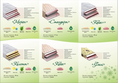 Производим и продаем оптом и в розницу ортопедические латексные и кокосовые матрасы с эффектом зима-лето. Есть и дешевые матрасы эконом класса. Делаем матрасы, как стандартных, так и нестандартных размеров. Вся продукция отпускается с производства, потому цена ниже, чем в других магазинах. Мы гарантируем качество наших товаров, потому даем гарантию на пружинные блоки 20 лет, и 36 месяцев на наполнители. Все матрасы прошли проверку в Минздраве Украины. Во многие города мы осуществляем бесплатную доставку. 0633522041, 0667113216, 0987075125 http://bonato.com.ua |