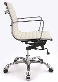 Простая с виду конструкция, удивительно комфортна, благодаря покрытию из кожзама и хромированным подлокотникам, облегченной спинке средней высоты с прогибом в области поясницы, а крестовина - опора имеет хромированное покрытие и обрезиненные колеса, размер кресла 62*63*93.www.modernosclasicos.com.ua |