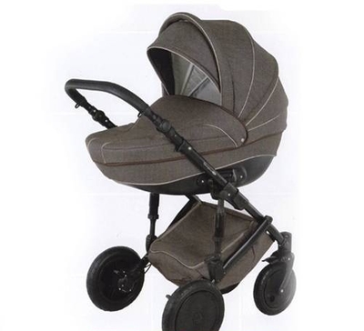 Данная модель коляски выполнена из полиэстеровой ткани наивысшего качества и ручкой, обшитой экологической кожей. Внутри коляска оббита тканью 100% хлопок.