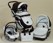 Детская универсальная коляска 2 в 1 Dada Paradiso Group (DPG) Romance состоит из: детской люльки для новорожденных, детского прогулочного блока и шасси.
