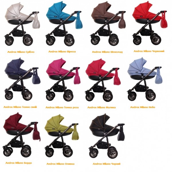 Детская универсальная коляска 2 в 1 Androx Milano, предназначена для малышей возрастом от 0 месяцев до 3х лет. Androx Milano - это яркая стильная новинка 2012 года, коляска очень удобная и комфортная, а также многофункциональная и практичная, яркая обладательница оригинальным дизайном!