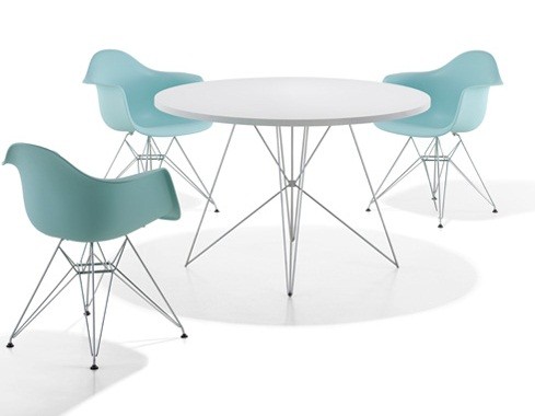 Стол, обеденный, столешница из дерева белого цвета, лакированное покрытие, диаметр 100 см, хромированные ножки, высота стола 72 см, дизайнерская копия обеденного стола известной итальянской марки.www.modernosclasicos.com.ua |