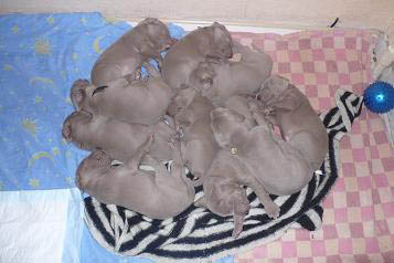 На питомнике Веймаранеров родилось 10 щенков веймаранера, 5 кобелей и 5 сук, от титулованных родителей.