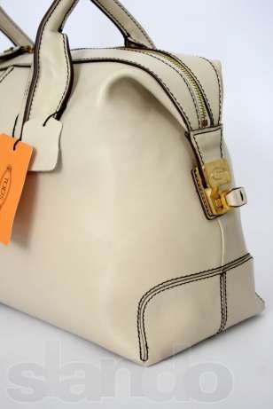 Женская кожаная сумка цвета слоновой кости с золотистой фурнитурой. Две ручки. Одна длиной 16 см. Другая-50 см от плеча. Одно отделение. Один внутренний карман. Застежка -молния. Внутренняя отделка из материи. Размер-43 см х19 см х25 см. НОВАЯ!!! |