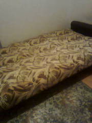 Продается диван-книжка в хорошем состоянии. Спальное место -1.90*1.25 м. Подлокотники- кожа-заменитель коричневого цвета. |
