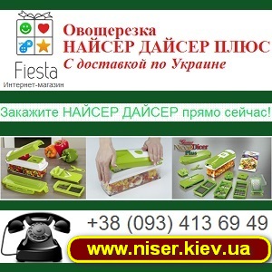 Оригинал Овощерезка Nicer Dicer Plus. Акция! Только до среды цены от производителя. Не упусти свою овощерезку из Германии Найсер Дайсер Плюс. Количество овощерезок ограниченно. Сертификат. Овощерезка Найсер Дайсер плюс - доставка по Украине БЕСПЛАТНО в течение 24 часов. Овощерезка Найсер Дайсер плюс - закажи прямо сейчас. Интернет-магазин FIESTA +38(093)4136949 +38(067)9307065 +38(095)2704939 Киев, ул. Межигорская, 82-А www.niser.kiev.ua |