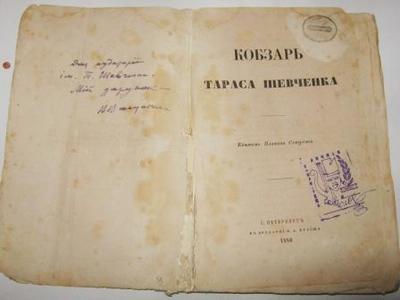 Шевченко Т. Кобзарь. С.Петербургъ.Въ друкарі п. а. Куліша 1860г . 244 с.. Бумажный издательский переплет. 20,5 х 14 см., в нормальном состоянии. Пожизненное издание автора- *Присвячене Марку Вовчкові, на память 24 січня 1859 року.* Есть фото в разных ракурсах, около 10 штук. |