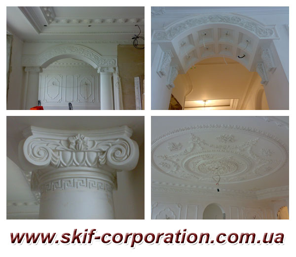Мастерская "Скиф" предлагает свои услуги по оформлению интерьера помещения - изготовление лепнины из гипса в Броварах, Киеве и Киевской области. Готовы выполнить лепной декор любой степени сложности. Изготовим по индивидуальному проекту гипсовую лепнину в различных стилевых решениях.