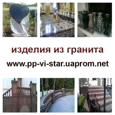 Предприятие ВИ-СТАР изготовит по индивидуальному заказу любые отделочные материалы из лучших гранитов Украины: гранитная плитка, столешницы, мойки, подоконники.