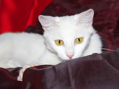 Кошка, по имени Ромашка, ласкова, но не навязчива, любит общество человека, может поладить с другими животными в доме. Она производит впечатление настоящей леди, грациозной, изящной и аристократичной, имеет сходство с турецкой короткошерстной кошкой. Любит игры, отличается любопытством и шаловливостью, не упустит ничего нового на вашем столе и сделает все, чтобы самой это попробовать. В тоже время, характер кошки остается нежным и ласковым.