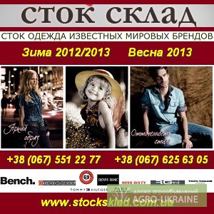 Компания Сток Склад предоставляет широкий выбор качественной стоковой одежды известных европейских брендов : Deputa Madre, Ed Hardy, RG-512, Mtr.Citi, Gin Tonik, Nikeina, Joop, Eden Roze, Cipo&Baxx, Miss Sixty, Free Soul, Tom Tailor, Etincelle, Sagaie, PSSSY, Carling, Me Too, Fixoni, Brubaker, Scotch&Soda, Bench, Exit, Outfitters, Mad, Sagaie, Elite , Tommy Hilfiger, Mexx, Morgan, Diesel, Energie, Selected, Jack&Jones, 4You, Frank Q, Zara, Massimo Dutti, Esprit,S.Oliver, Naf Naf, Fracomina, Kookai, Axara, Bandolera, NTS, Sarah Chole, Silvian Heach, Vila,Only, Blend, S-Milano, Takeshy Kurosawa, BGN, Bessini для магазинов,бутиков и других покупателей.В наличии имеется детская,молодёжная,мужская и женская одежда итальянских,французских,испанских,английских,австрийским,немецких,голландских и других производителей.От повседневной до вечерней праздничной одежды.А также текущие коллекции.Доступные низкие цены и ваш выбор при покупке.Свою покупку Вы можете формировать самостоятельно .Предоставление скидок ,кредита , фотографий новых поступлений и консультаций по ассортименту.Доставка по Украине.Выгодное сотрудничество для вас и нас