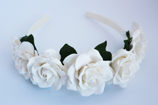 Материал: японская глина Деко Цвет: белый В комплекте: обруч с цветочной композицией из белых роз Размер: универсальный Технология: лепка из японской глины Деко |