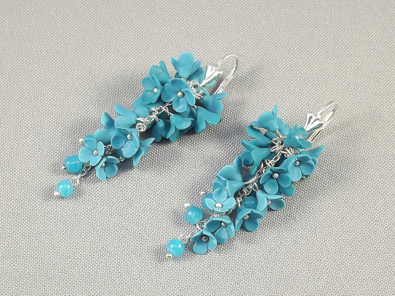 Материал: полимерная глина, бусины Цвет: бирюзово-голубой В комплекте: браслет и серьги-гроздья с металлической фурнитуры, хрустальных бусин (можно и поштучно) Браслет — 260 грн Серьги-гроздья — 140 грн Технология: лепка из полимерной глины В наличии: под заказ (3-4 дня) |
