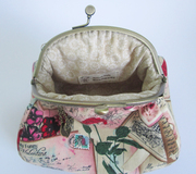 Размер: высота 14 см, ширина 17 см Цвет: нежно-розовая гамма Материал: корейский хлопок, уплотнена дублерином и синтапоном, мягкая, вместительная, стеганная подкладка Особенности: кошелёк и мини косметичка с размерами: высота 14 см, ширина 17 см, бок 11,5 см, фермуар 12,5 см. Вмещается помада, зеркальце, лак, тушь, купюры и карточки |