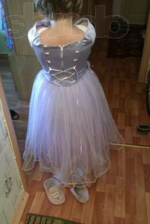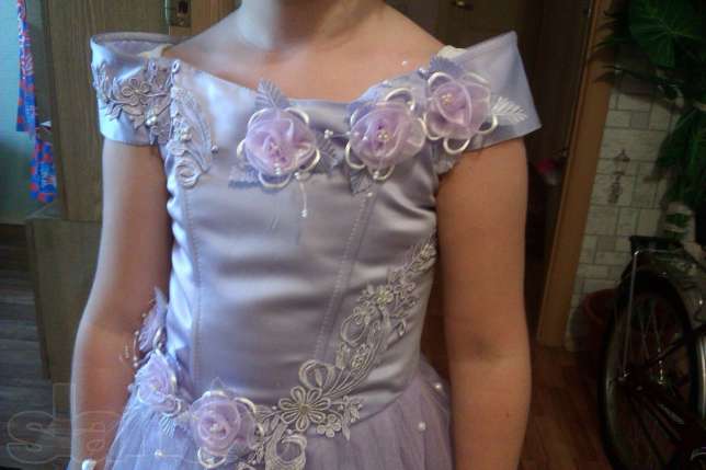 Платье для девочки лет 7, турецкое, заводское. Длина - 90 см, спинка - 30 см, талия - до 35 (корсет). |