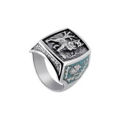 Серебряный перстень с изображением волка - Браслеты, сережки, кольца