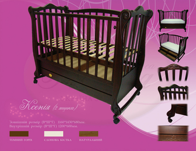 www.Princess-Ksenia.com.ua Кроватка-софа Трия Принцесса Ксения с 2 подкроватными ящиками. Деревянная кроватка с искусно выполненной резьбой излучает тепло человеческих рук, идея единства человека и природы настолько сильна что время от времени заявляет о себе вспышкой моды на природность,экологичность, натуральное дерево. Многофункциональная кроватка-диван регулируется по высоте и съёмная боковая стенка для удобства мамы, два уровня высоты донышка ( нижнюю можно использовать как манеж или как диван),функция качания+колёса, два подкроватных ящика, накладка-грызунок на перила, увеличенная высота на 10 см позволяет маме прилагать меньше усилий при укладывания ребёнка. мобл.тел.(097)902-22-24 |