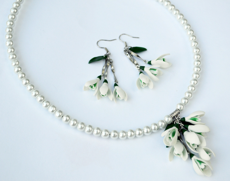 Материал: полимерная глина, жемчуг Цвет: бело-жемчужный В комплекте: колье и серьги с полимерной глины и бусины под жемчуг Технология: лепка из полимерной глины |