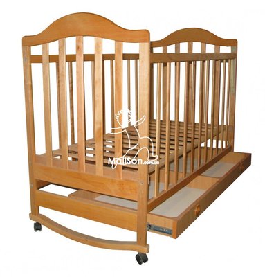 Кроватка детская с ящиком предназначена для детей в возрасте от рождения до 5 лет. Сделана из природного материала. При изготовлении использовались нетоксичные лаки. Кроватка гарантирует Вашему ребенку покой и безопасность. Бортики достаточно высокие, чтобы удержать малыша. Один из бортиков опускается или полностью снимается - для удобства родителей.