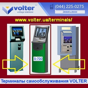 Банковское оборудование 2013, терминалы платежные для банков и платежных систем. ТМ VOLTER предлагает: Надежный и многофункциональный терминал платежный модель S-700. Удобная форма корпуса, сложная для взлома, легкий доступ при обслуживании и привлекательный вид. Возможность работы со сканером штрихкодов и банковскими карточками. Различные варианты комплектации. Платежные терминалы VOLTER +38(044)2484853 +38(066)5047525 Киев, ул. Мартиросяна, 16/14 www.volter.ua/terminals/ |