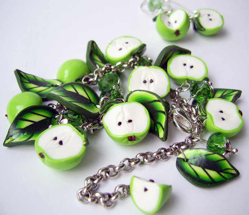 Материал: полимерная глина Цвет: зеленная гамма В комплекте: браслет и серьги (можно и поштучно) Браслет — 250 грн Серьги — 120 грн Технология: лепка из полимерной глины |