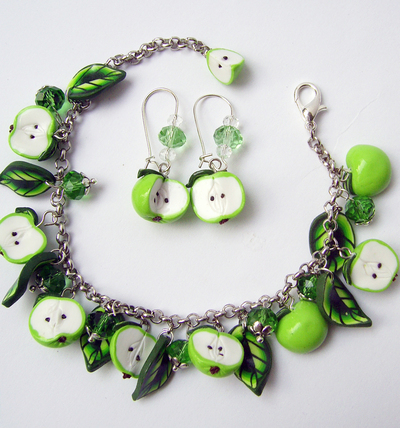 Комплект Райские яблочки - Браслеты, сережки, кольца
