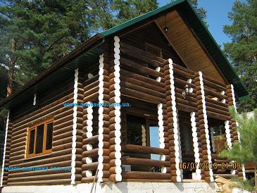 дом из дерева, оцилиндрованное бревно карпатьська-смерека, между бревнами натуральная прокладка из