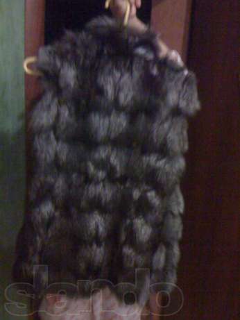 жилетка из чернобурки до середины попы,теплая,из кусочков,по фигуре.размер S(42-44,по бокам кожаная шнуровка,можно регулировать)(одета раз 5 ) |