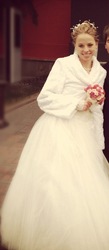Продам роскошное свадебное платье нежно кремового цвета (айвори), в идеальном состоянии, единожды одетое + фата (крем.) + шубка (крем.). Платье воздушное и легкое, атласное, с кринолином на пять колец, сверху обшито несколькими слоями мягкого фатина, за счет этого выглядит пышно. Корсет и подол платья обшиты нежными кружевными цветочками с бисерным орнаментом. Платье удобное при носке. Размер 40-42, но за счет шнуровки можно и до 46 (регулируется шнуровкой на корсете). Рост 165-175. По полу не волочится. Фата нежно кремовая, по кругу обшита нежным цветочным кружевом. При покупке получите в подарок веночек на голову + подвязку + подушечку для колец. |